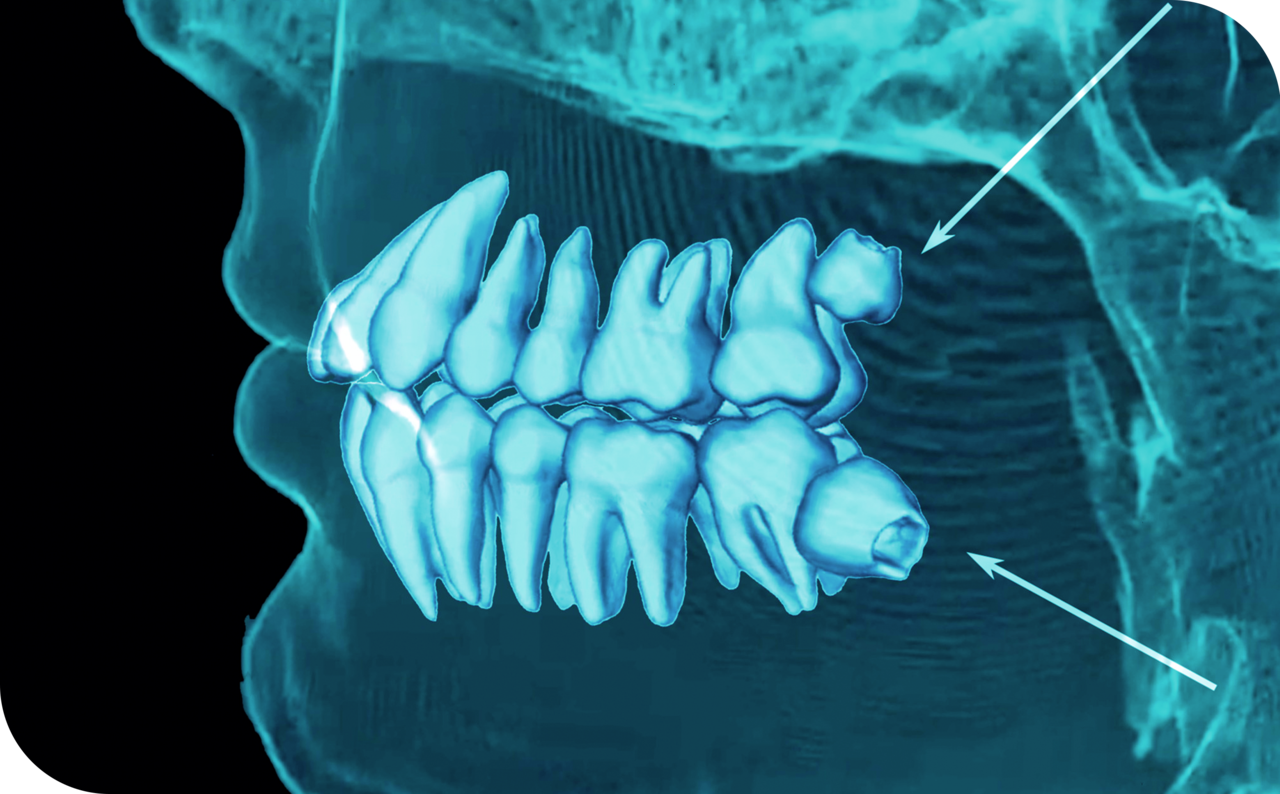 ✓ 뿌리 형태가 복잡하거나 휘어진 사랑니